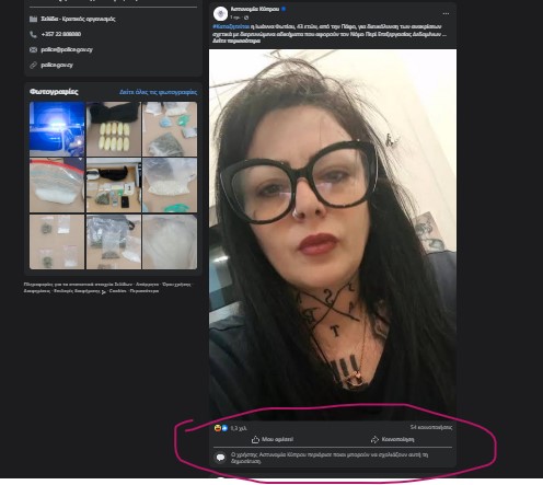 Στην σελίδα της στο FB, η Αστυνομία Κύπρου που δημοσιοποίησε τα εντάλματα σύλληψης αναγκάστηκε να σβήσει τα σχόλια πολιτών όταν είδαν ένα “κύμα συμπαράστασης” υπερ της Άννυ.