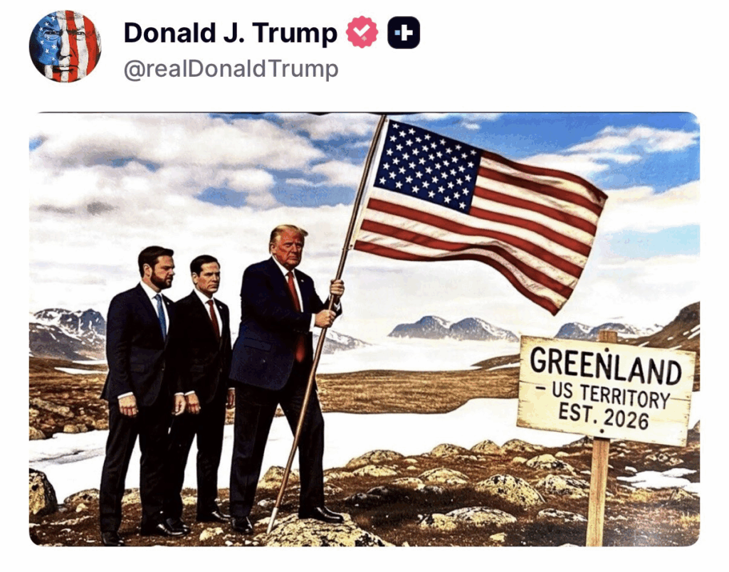 Ο Donald J. Trump ανεβάζει στο Truth Social μια σειρά από AI-generated εικόνες για το πως θα κατακτήσει την Γροιλανδία (επειδή δε του έδωσαν το νόμπελ ειρήνης) .
