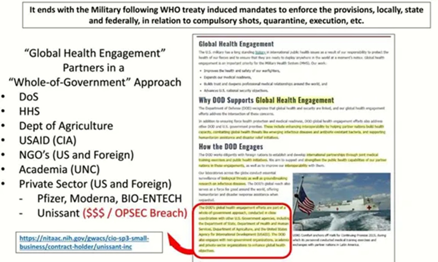 Και σε αυτό το σημείο η “Defense Office Agency” το ολοκλήρωσε με κάτι που ονομάζεται “Global Health Engagement”, εταίροι σε μια συνολική κυβερνητική προσέγγιση.