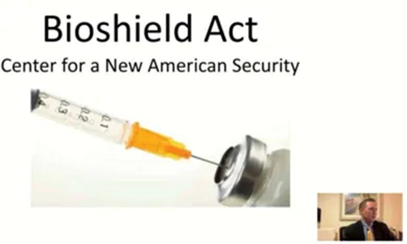 Στην πραγματικότητα ήταν μια ομοσπονδιακή πρωτοβουλία. Δεν ήταν ακόμη νόμος. Είναι μια ομοσπονδιακή πρωτοβουλία που έγινε κανονισμός και νόμος μέσα από την πορεία των γεγονότων και του χρόνου. Έτσι, το 2003 είναι η χρονική στιγμή που όλα αυτά ξεκινούν. Και από εκεί πάμε στον “Bioshield Act.”