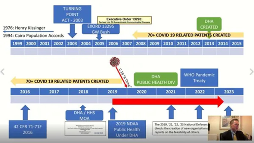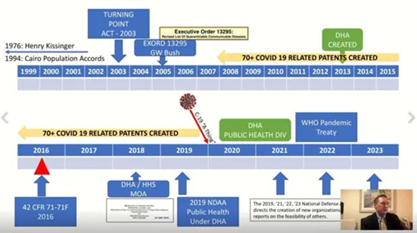 Έτσι, το “Πρότυπο Νόμου για την Υγεία”, η “Διεθνής Συνθήκη για τους Κανονισμούς Υγείας για την Πανδημία”, όπως μπορείτε να δείτε, εναρμονίστηκε με τους νόμους των Ηνωμένων Πολιτειών που συνέβη ακριβώς ταυτόχρονα.