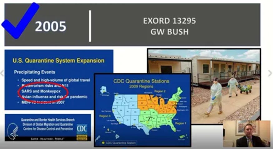 Ακολούθησε το εκτελεστικό διάταγμα του προέδρου Μπους, αν θυμάμαι καλά. Και το 2005, αυτό έγινε συνώνυμο των υγειονομικών κανονισμών του 2005. Αυτές ήταν συμφωνίες μεταξύ των εθνών αυτού του κόσμου. Όλα τα έθνη-μέλη του ΠΟΥ, τα 140 έθνη και δύο επικράτειες. Αν θυμάμαι καλά.