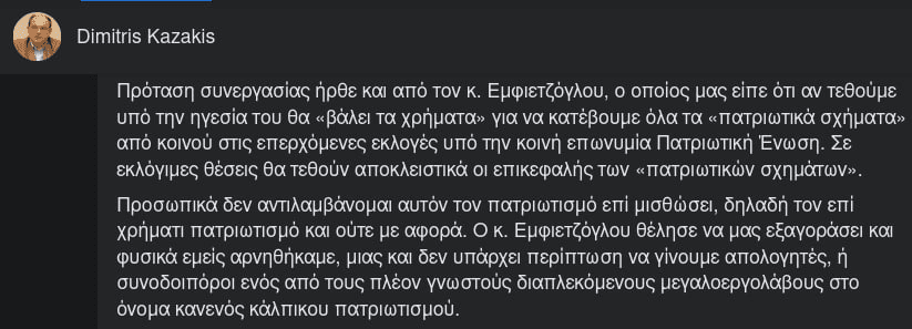 Φυσικά ο Εμφιετζόγλου δεν προσέγγισε μόνο αυτά τα κόμματα αλλα όλα όσα δεν κατάφεραν να εισέλθουν στη βουλή. Ευτυχώς, δεν είναι όλοι ίδιοι. Δυστυχώς, κέρδισαν αυτοί που έβαλαν μπροστά το προσωπικό τους συμφέρον…