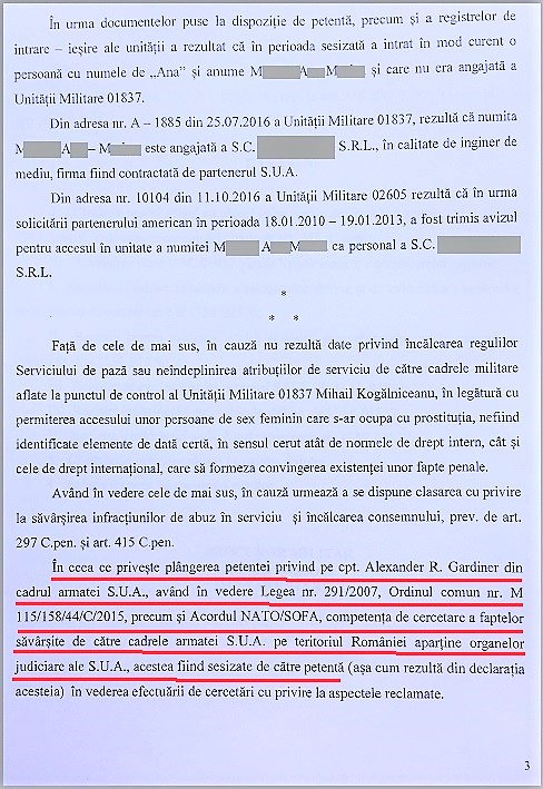 Επειδή, βάσει συμφωνίας του 2001 μεταξύ Ρουμανίας και Ηνωμένων Πολιτειών, οι τοπικές αρχές δεν είχαν δικαιοδοσία να διερευνήσουν Αμερικανούς στρατιώτες. Τα χέρια τους ήταν δεμένα πριν καν ξεκινήσει η υπόθεση.